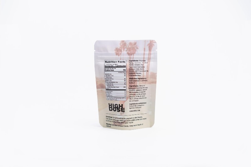 In the age of edibles as a health and wellness holy grail, the joy of taking an edible with your buddies and kicking back is beginning to look like a thing of the past. We’re not health-hero- haters, but we think there’s still a time and place when good edibles can just be good weed. That’s why we created High Dose gummies: delicious gummies, infused with a f*ck-ton of the highest quality THC around, that are made with a good time in mind. 1000mg or 1500mg THC in a single piece gummy.