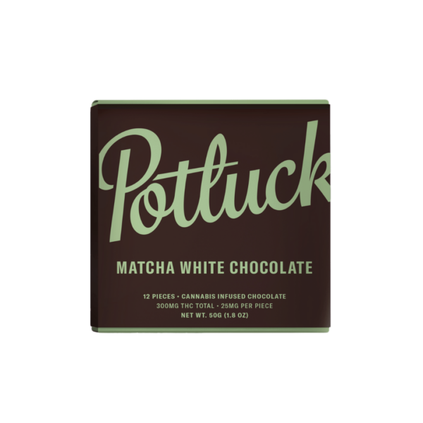 Developed in collaboration between the most notable pioneers in the Canadian edibles extracts industry, Potluck chocolate bars are created with the modern edibles connoisseur in mind. You take your edibles seriously; so do we. Our chocolate bars are crafted with diligence and precision by the Potluck team to provide an accessibly priced experience without compromising purity or taste: that’s why we use only all – natural, high quality flavours and full spectrum edibles oils and isolates. Ideal for dessert lovers who prefer a departure from classic milk chocolate, our Matcha White Chocolate bar contains 300mg THC divided into twelve 25mg pieces